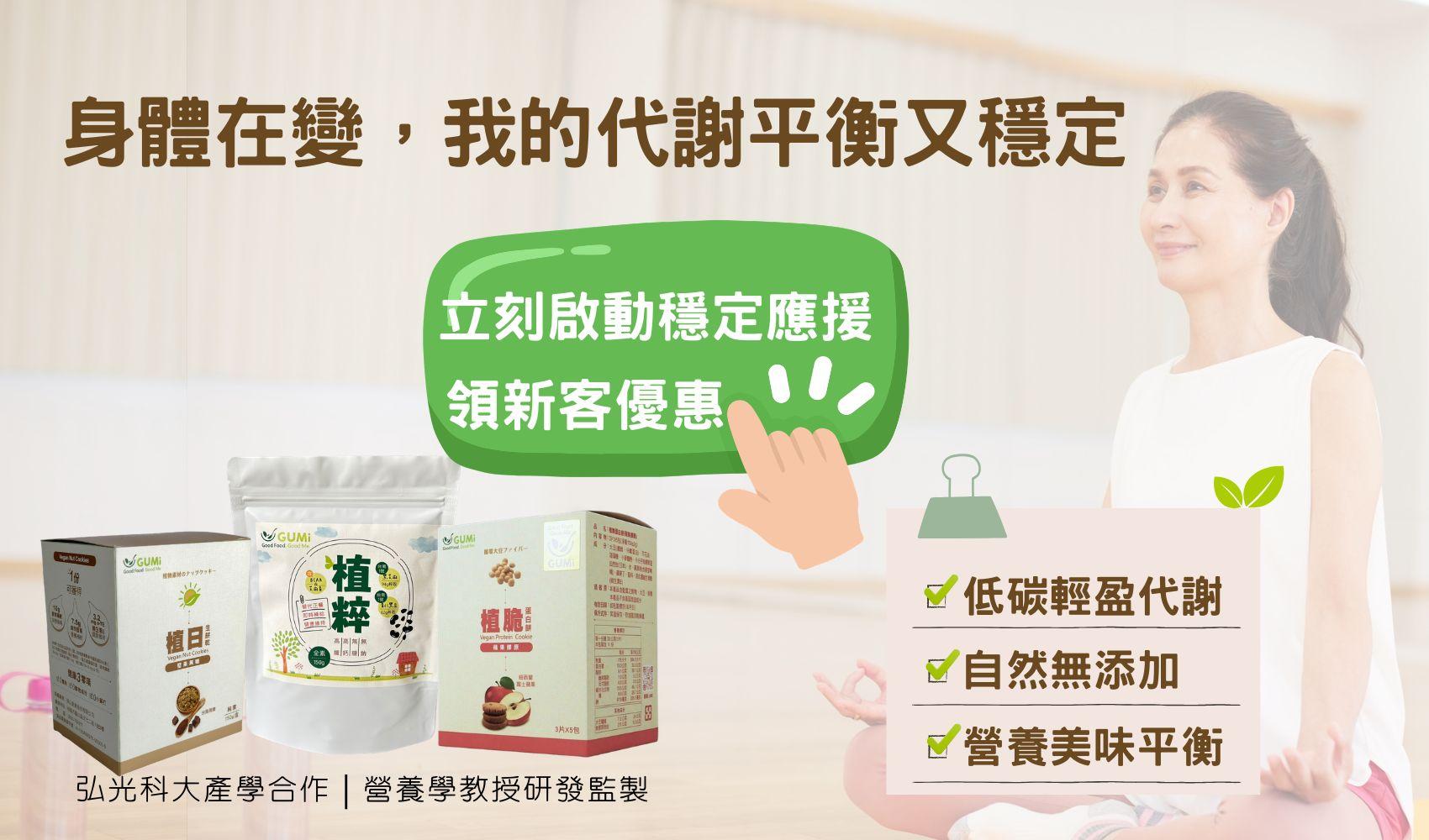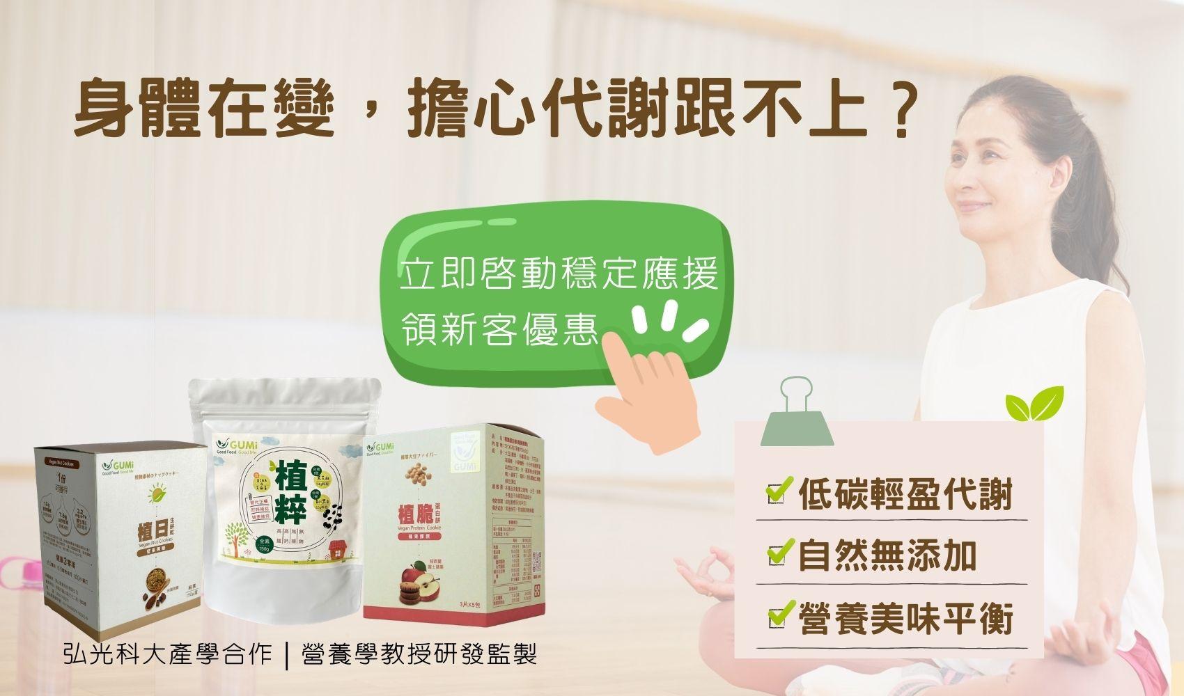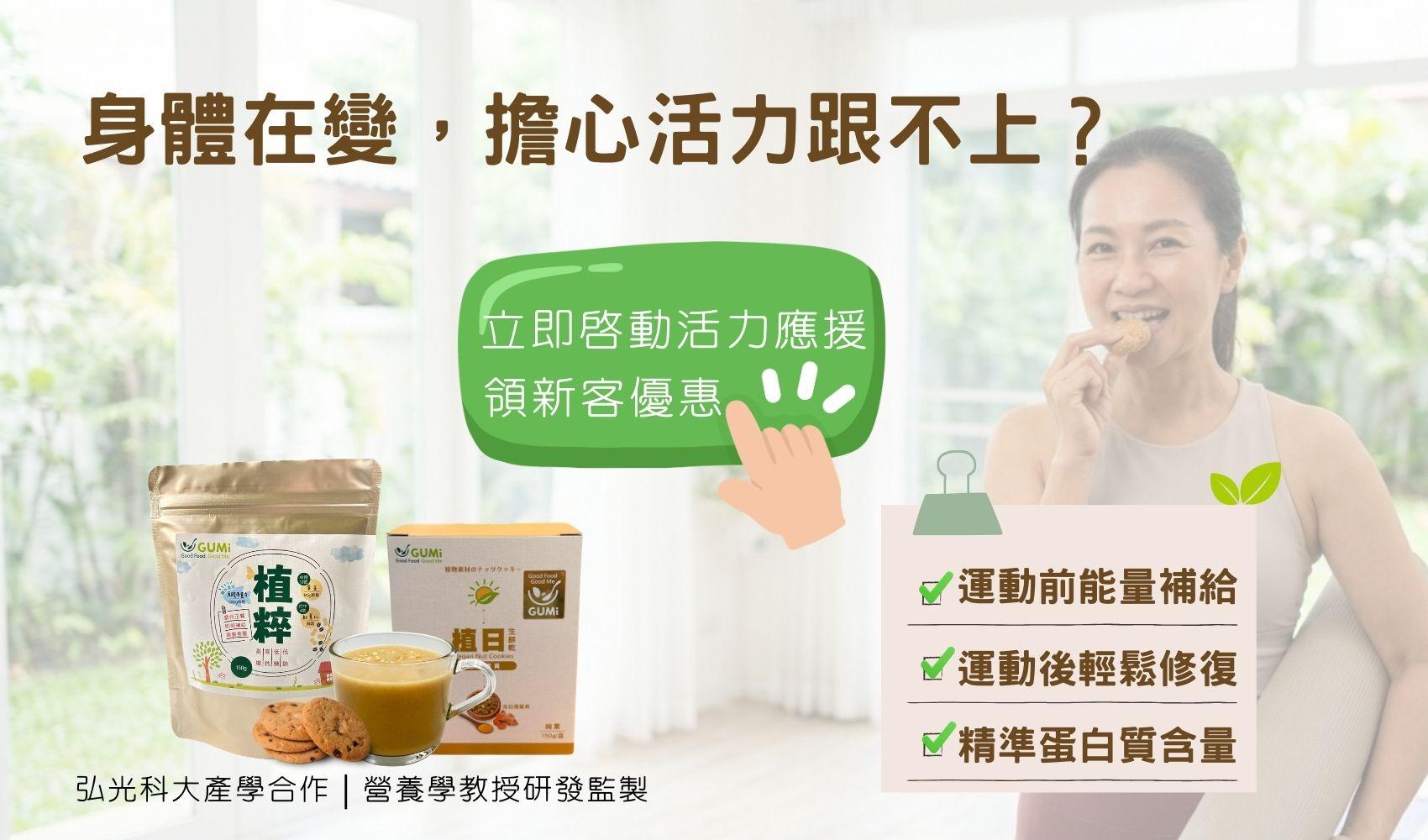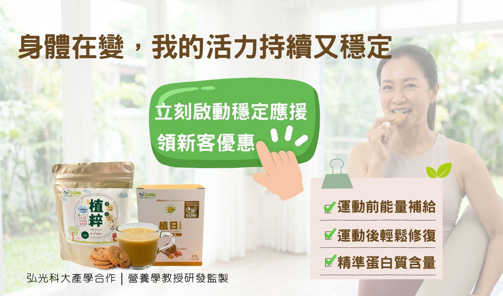 無論是植日生餅乾的日常陪伴,還是植脆蛋白餅與植粹沖泡飲的精準應援,GUMi 翻轉您對純素餅乾、零食的想像,讓養生變得簡單、美味!!